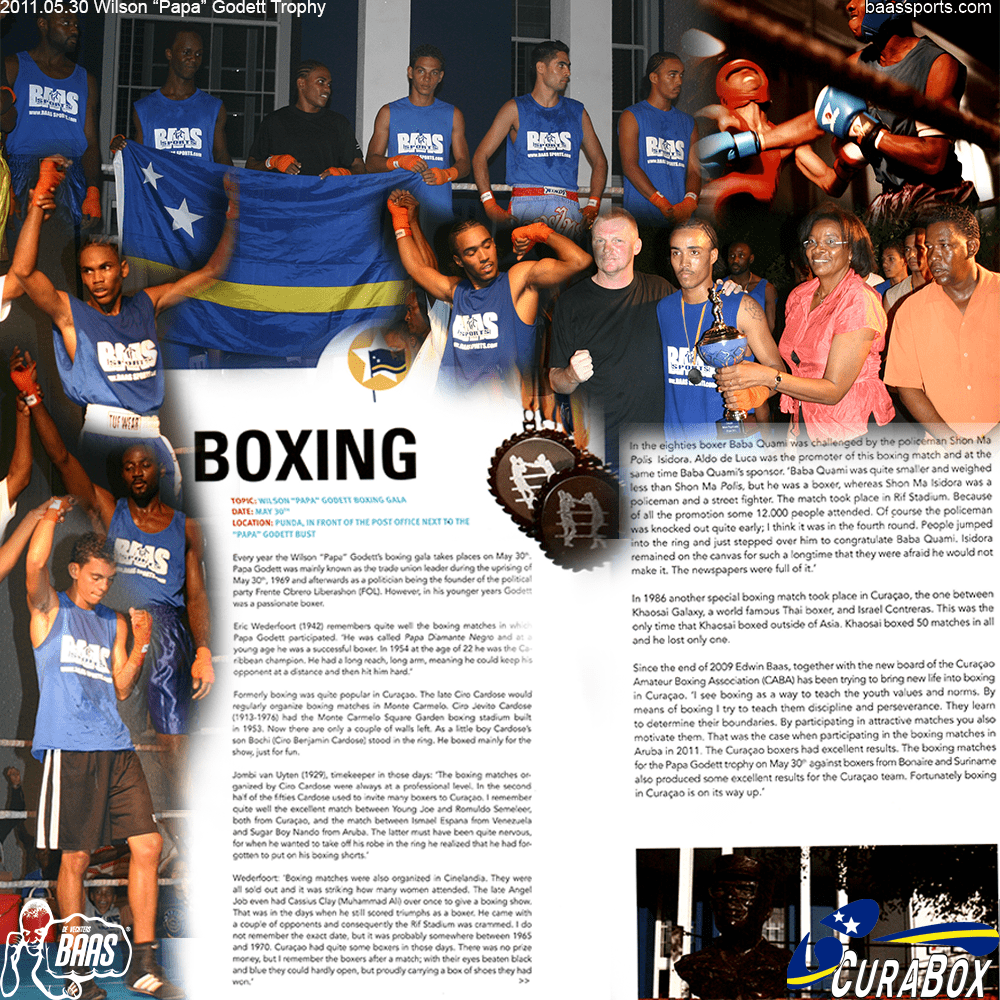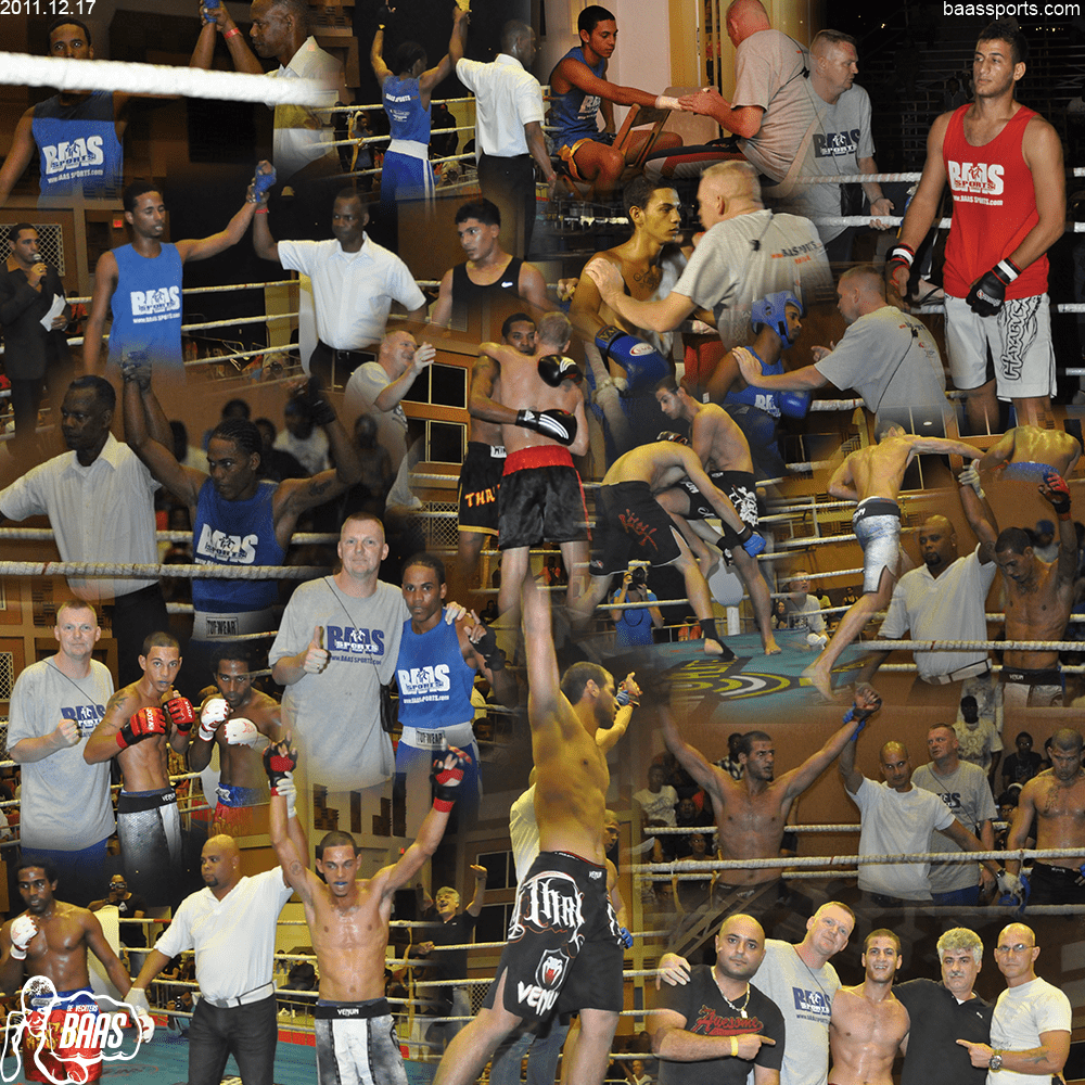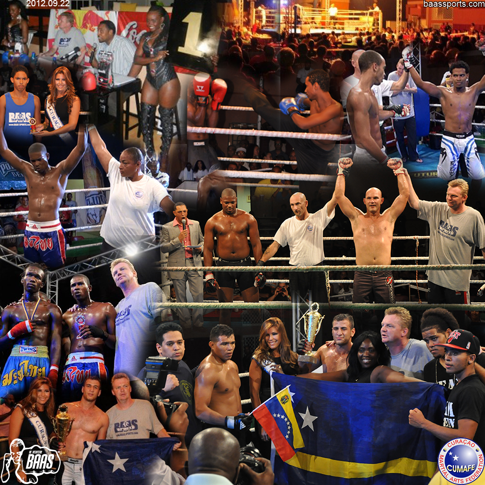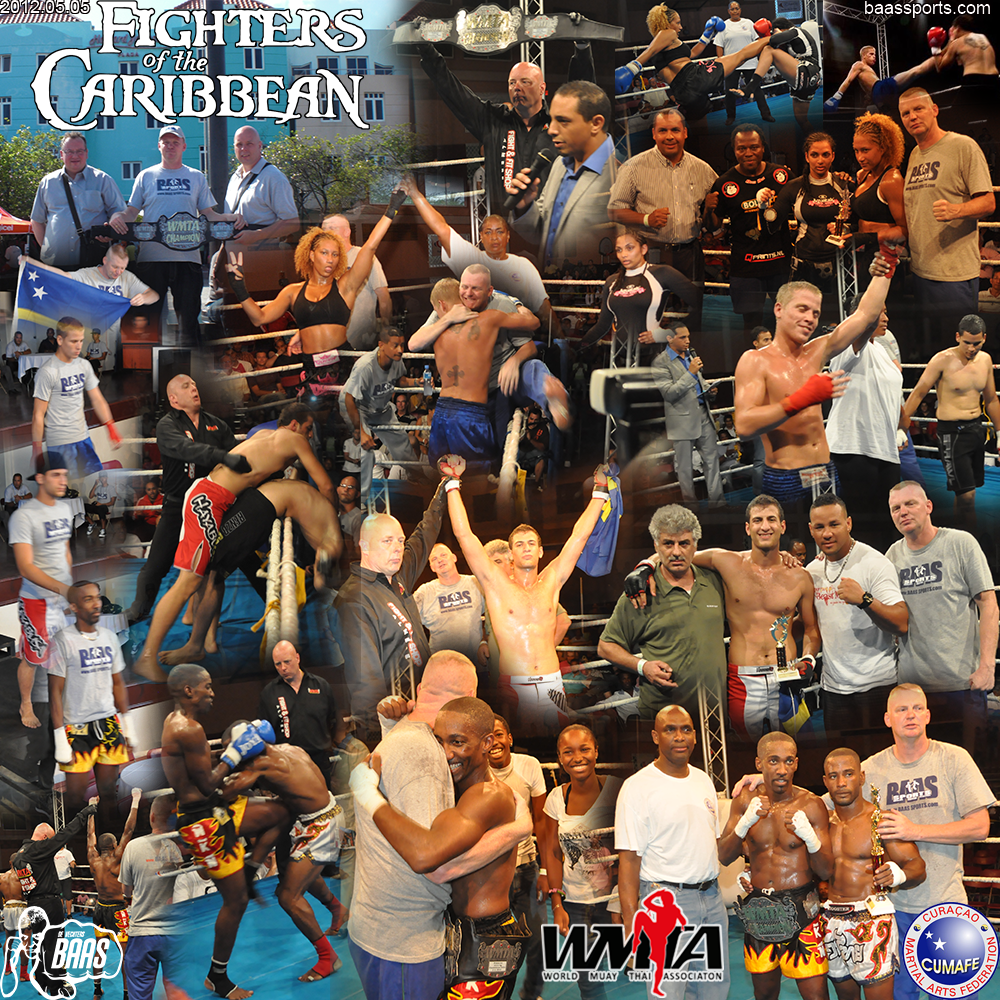 2012 Fighters of the Caribbean 4 victories for Baas Sports Curacao; Zianni Fluonia won SU, Joost Mulder won AUA, in MMA Mohamed Hussein won SXM, Milangelo Eugenio won the A-class title fight for the Caribbean WMTA belt.