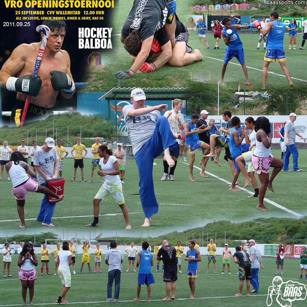 Baas Sports @ Hockey Balboa VRO tournament CVV Willemstad. Edwin Baas opened with a warming-up for all hockey players. Boxing by Justin Gogulski and Argenio Pieters. MMA by Rob Gogulski and Mohamed Hussein. Thaiboxing by Palmira Baas and Thalisa Everon.