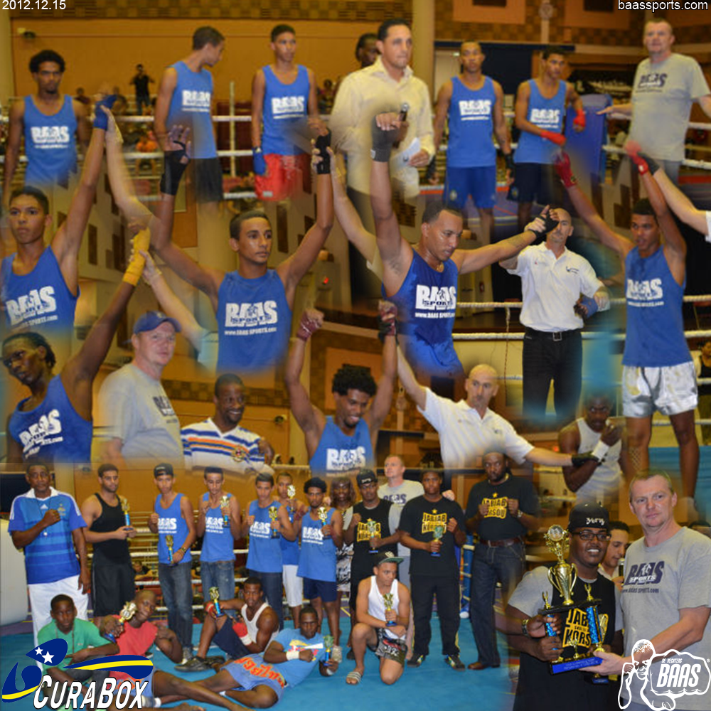 All 6 boxers from Baas Sports that participated at CABA 2012 won. Justin do Rego, Jowi Adriana, Leroy Breeschoten, Javier Janzen, Jason and Franklin Cox all won. Justin Gogulski vs Joost Mulder TB exhibition