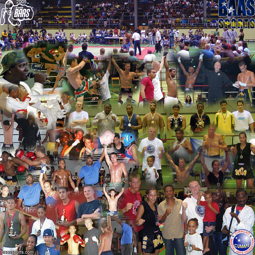 2005.05.01 Stephen Liu victorious debut. 2005.06.11 Baas Sports won all 4 Thaibox divisions @ CUMAFE championships with Louraine Girigori, Vincent Schuttel, Roderik Meijsing and Stephen Liu. In karate Julius-Ann Johanns (46 kg) became 3rd @ open class kumite.